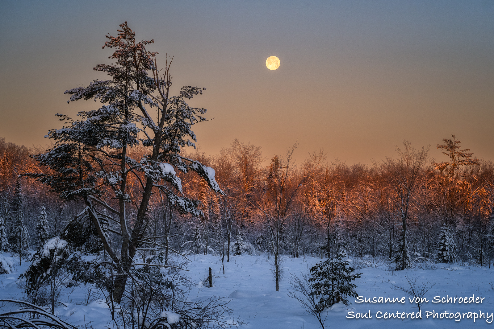 I witnessed many beautiful sunsets at Audie Lake in the Blue Hills and Shanti enjoyed his evening swims. The full moon end of August was shining bright and I was able to capture the setting moon surrounded by morning mist/fog rising up from a lake. A very special moment!
